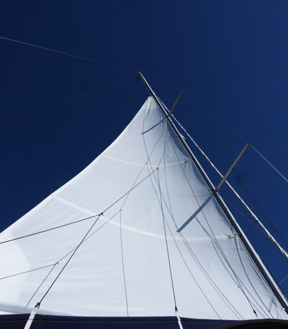 Am ersten Maiwochenende ist es gewohnt eisig und windig, das Groß im zweiten Reff reicht für flotte Fahrt...: