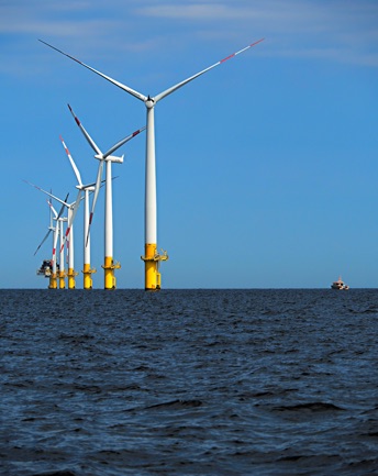 Oben: Der nun schon ältere Windpark Baltic 1 und eine andere alte Bekannte, SV Albert Johannes vor dem Darßer Ort.
