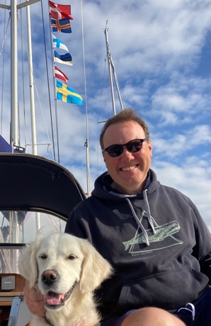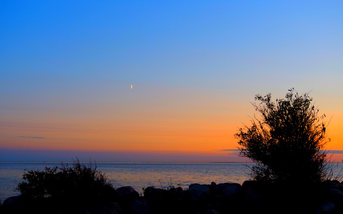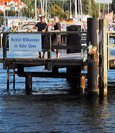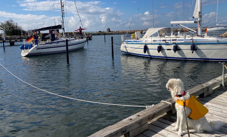 Am nächsten Morgen bekommen wir an der deutschen Küste, an der es erheblich wärmer ist als in Schweden, einen moderaten Südwestwind serviert. Warnemünde ist jetzt noch rund 75 Seemeilen entfernt – und genau von dort her kommt dieser Wind... Wir verabreden uns stattdessen mit Astrid, die mit Hund Jule und VW-Bulli unterwegs ist, auf der dänischen Insel Falster.