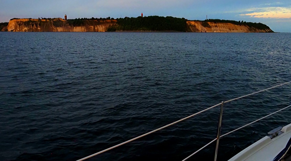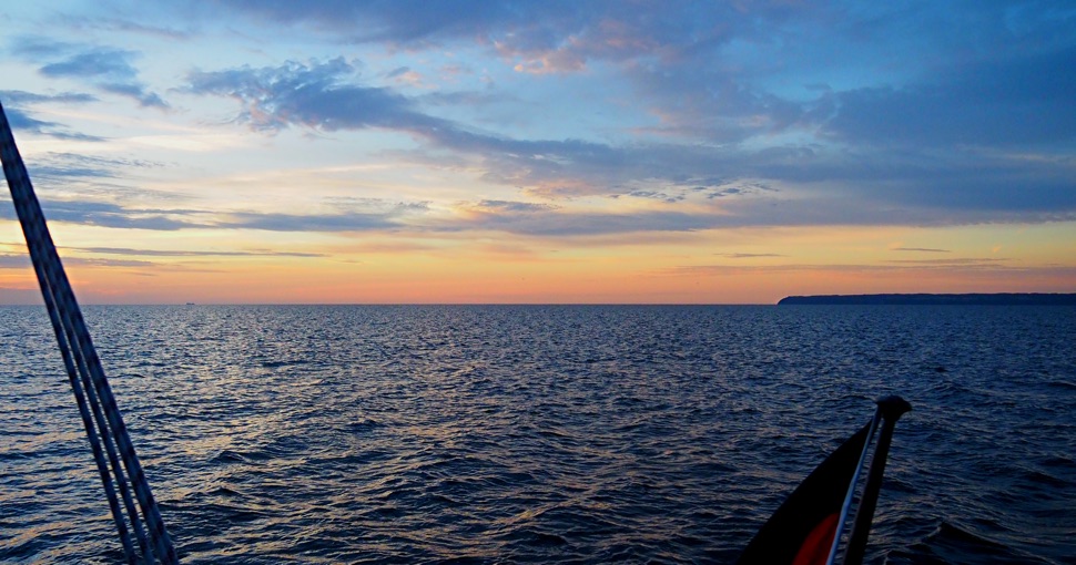 Unser Plan geht auf: Während der böig auffrischende Westwind die Kreuz entlang der schwedischen Südküste sehr mühsam gemacht hätte, können wir das Kap Arkona mit nur einem Holebug erreichen. Selbst dieser Kreuzschlag wäre vielleicht nicht nötig gewesen, wenn wir nicht dem neuen Windpark Arcadis Ost 1 hätten ausweichen müssen – Raum an der deutschen Ostseeküste wird immer knapper. Gut jedenfalls, dass SY Blue Layla gut Höhe läuft und wir so die knapp 80 Seemeilen bis zur deutschen Küste vor Sonnenuntergang in trockenen Tüchern haben.